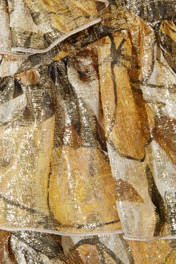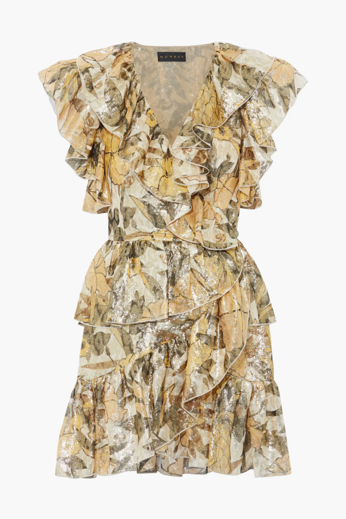 You are here: Home1 / SHOP2 / Women's Clothing Tops3 / Metallic gold jacquard mini wrap dress by DUNDAS